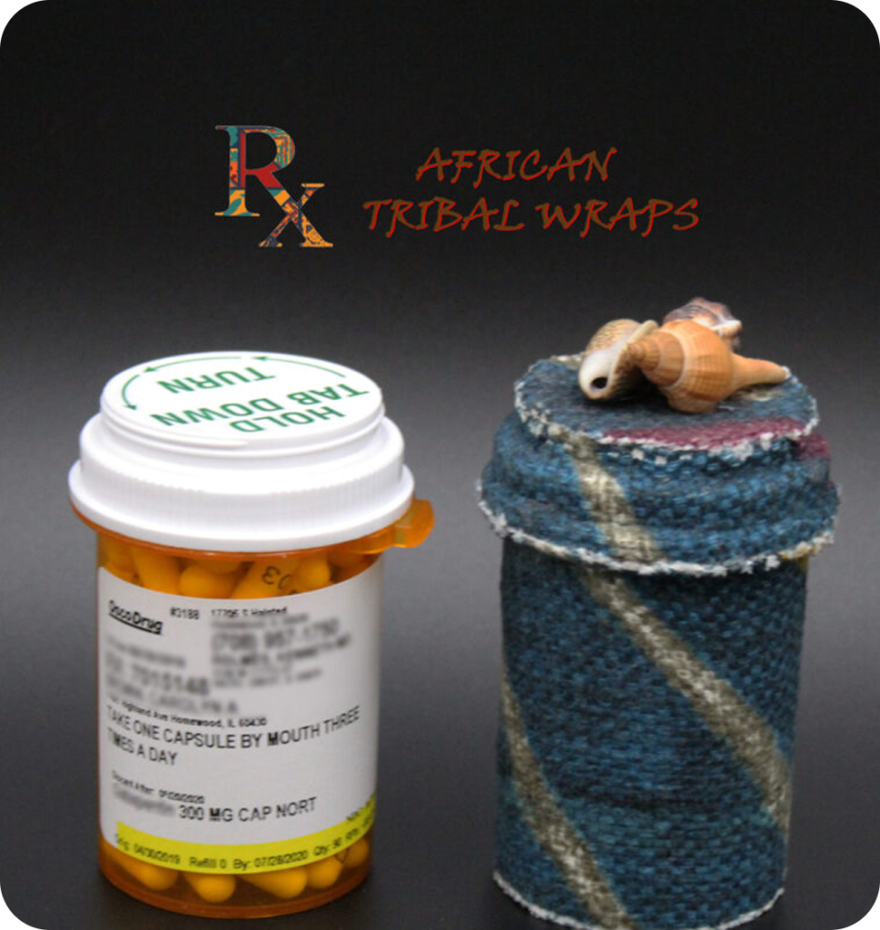 African Rx Tribal Wraps are decorative, fabric-wrapped prescription pill containers made from authentic African mud cloth and kente-inspired textiles. Designed to protect your privacy at home, while traveling, and everywhere in between.